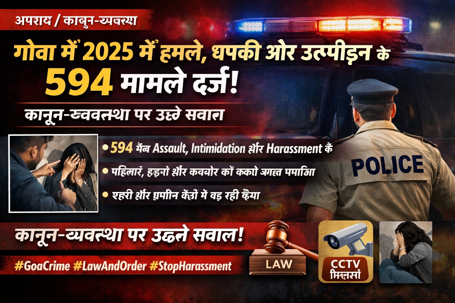 गोवा, जो अपनी शांत छवि, पर्यटन और सौहार्दपूर्ण सामाजिक वातावरण के लिए जाना जाता है, वर्ष 2025 में एक चिंताजनक अपराध आंकड़े के कारण चर्चा में आ गया है। उपलब्ध रिकॉर्ड के अनुसार, साल 2025 के दौरान राज्य में हमले (Assault), धमकी (Intimidation) और उत्पीड़न (Harassment) से जुड़े कुल 594